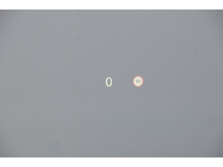 Grafisch Head-up Display voor weergave van de ingestelde snelheid van de adaptieve cruise control, verkeersbordenherkenning en navigatie aanwijzingen